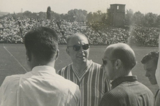 1961, piłkarze brazylijskiego Gremio wysłuchują koncertu w Krakowie. W środku w okularach red. Jan Rotter.